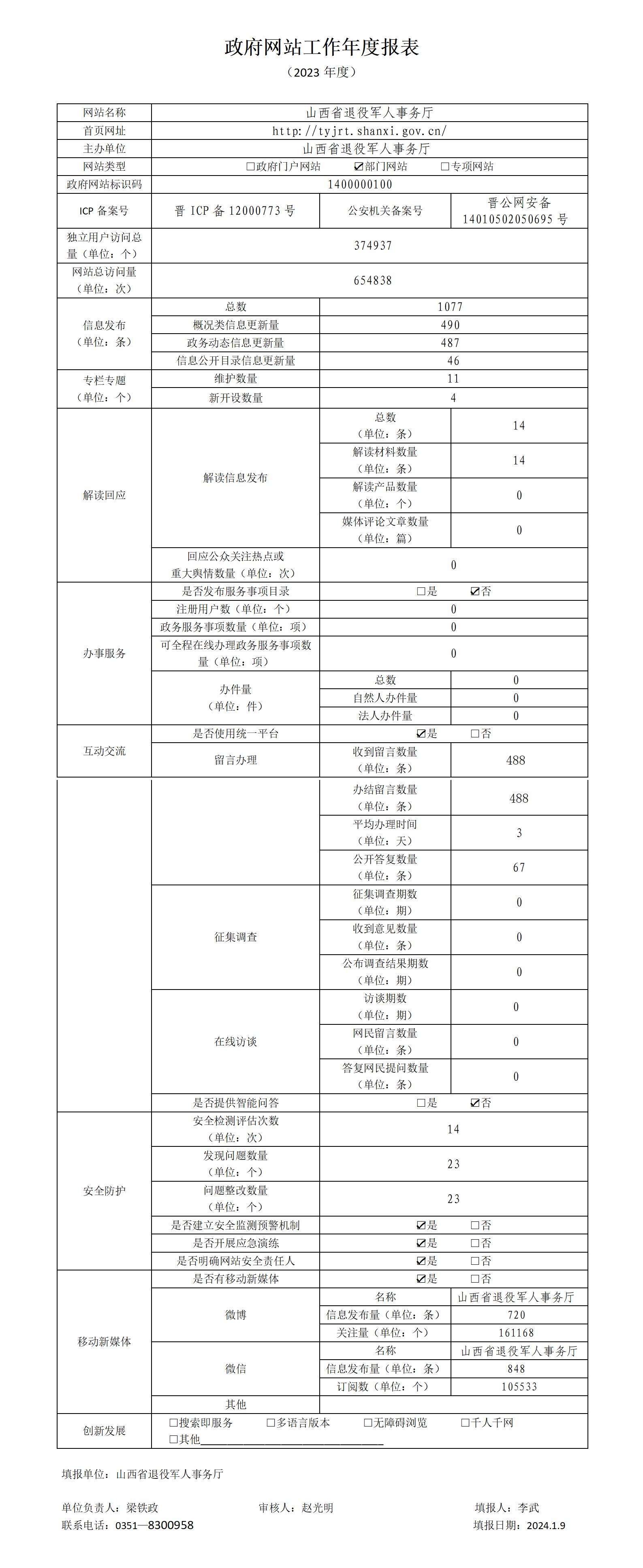 山西省退役军人事务厅2023年政府网站工作年度报表
